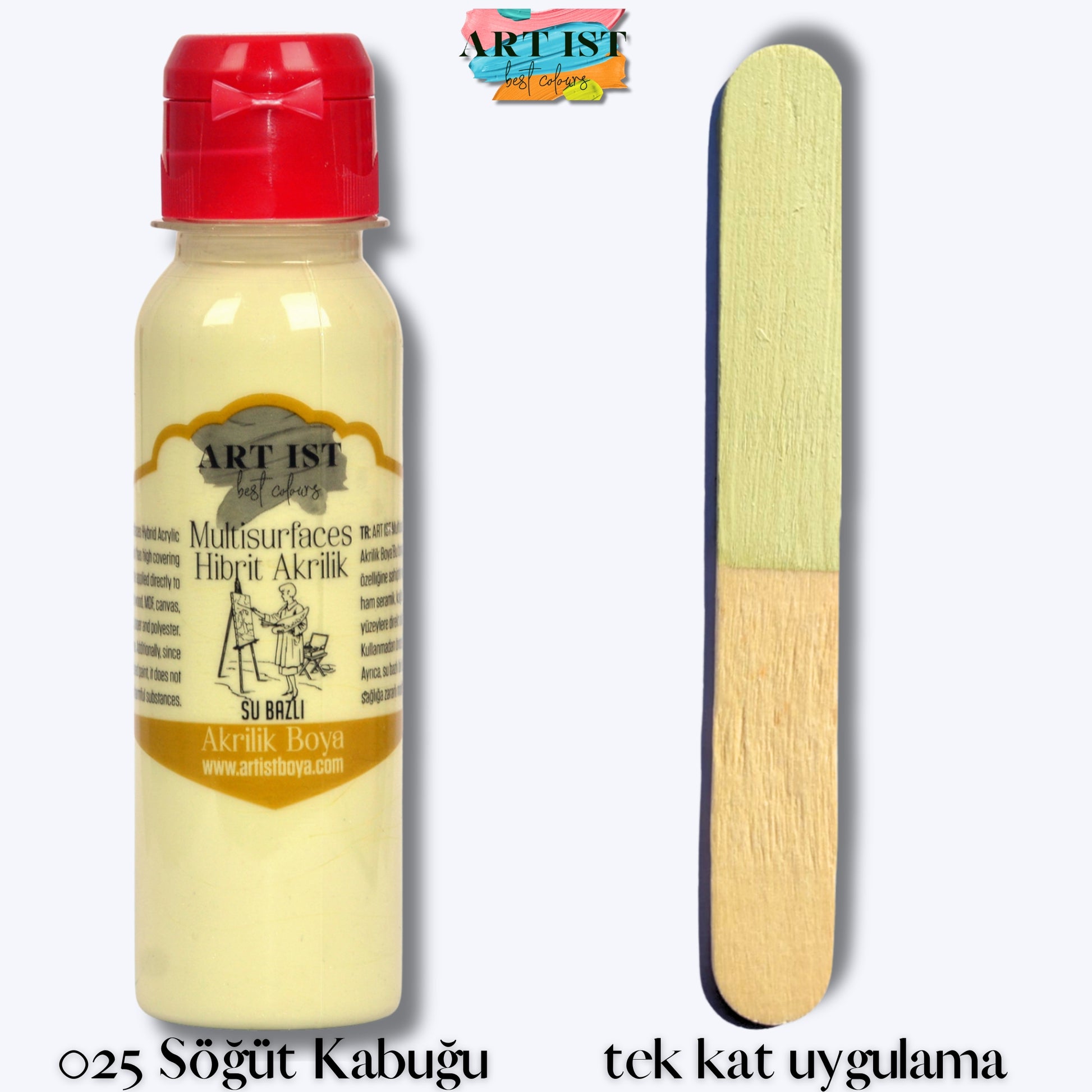 ART IST Multisurfaces serisi, sanatsal çalışmalar ve dekoratif projeler için özel olarak geliştirilmiştir. Normal akrilik boyalara kıyasla daha kıvamlı yapısı, kontrollü uygulama ve katmanlama imkânı sunar. Aynı zamanda geri dönüşüm projelerinde de tercih edilebilecek çoklu yüzey uyumuna sahiptir.