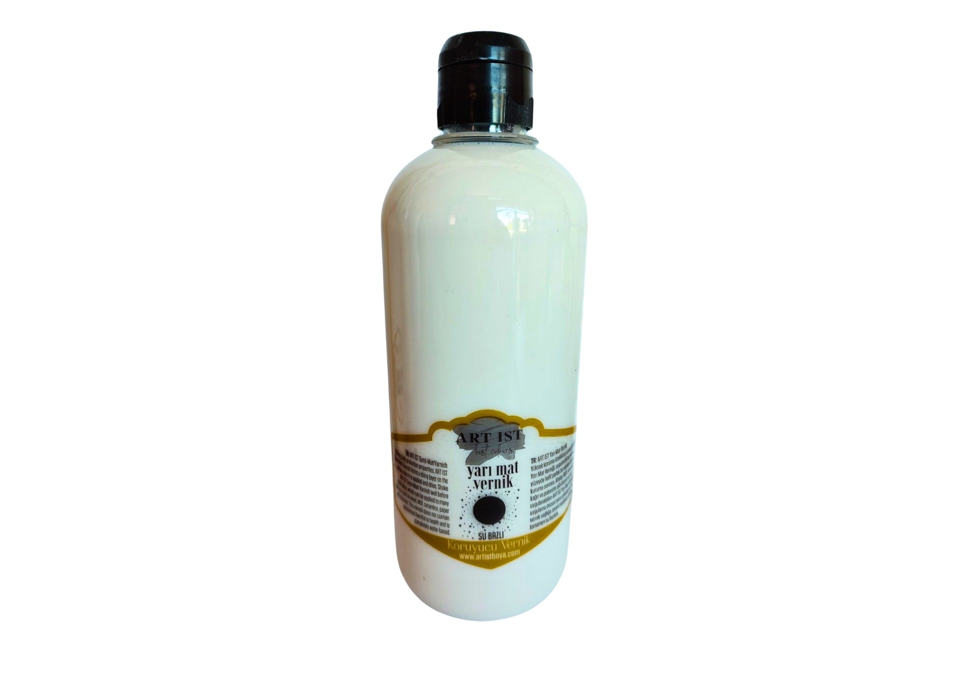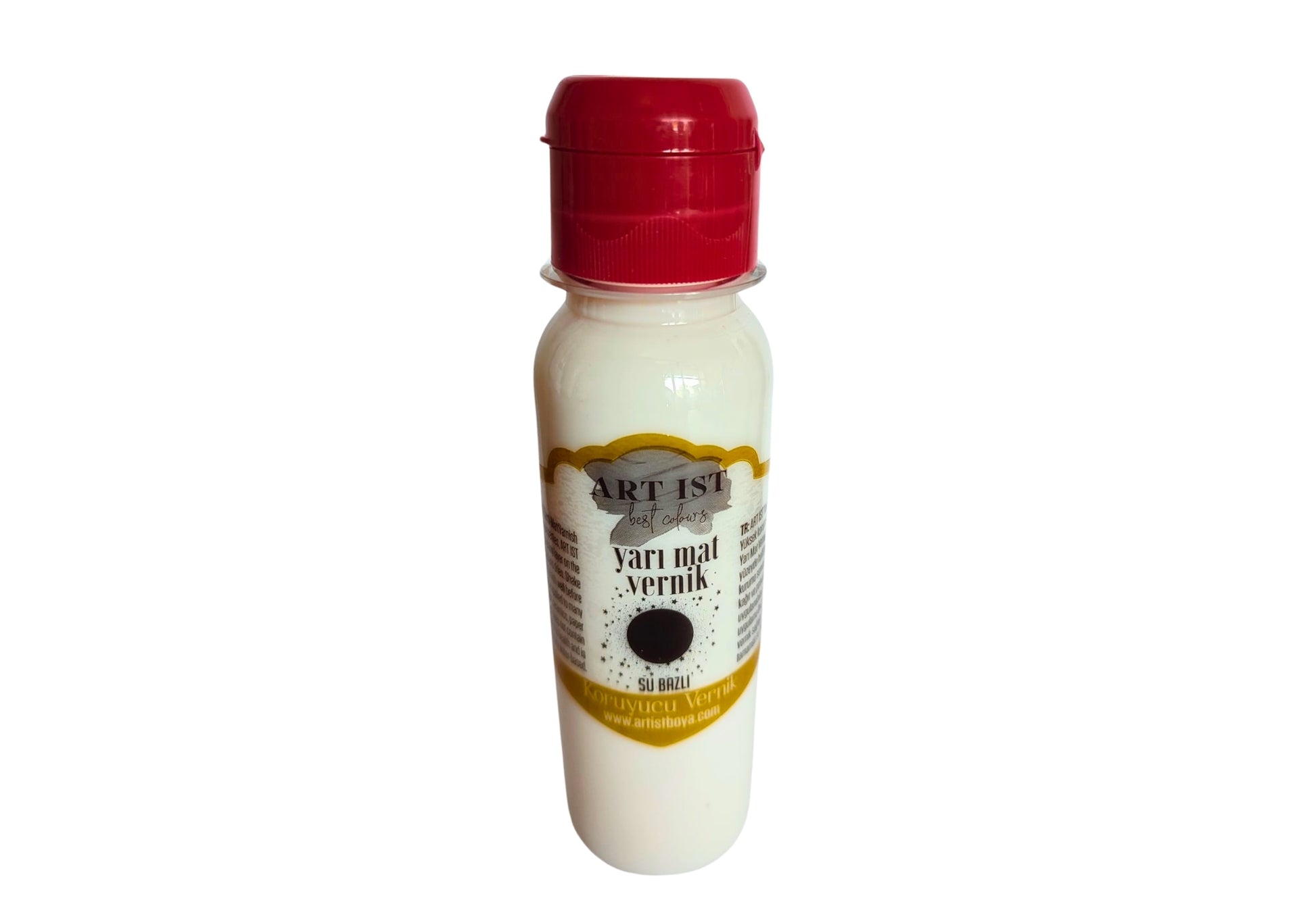 ART IST Yarı Mat Vernik, yüzeylere hafif parlaklık içeren, soft ve doğal bir bitiş kazandırır. Mat vernik kadar yansımasız değildir; parlak vernik kadar da yoğun ışık yansıtmaz. Bu denge sayesinde özellikle dengeli, yarı parlak görünüm isteyen kullanıcılar için idealdir. Parlaklık sıralamasında taş vernik → parlak vernik → yarı mat vernik → mat vernik şeklinde konumlanır.
